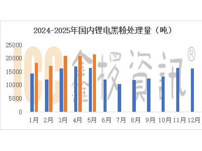 2025年1月國內(nèi)廢舊鋰電池黑粉統(tǒng)計處...